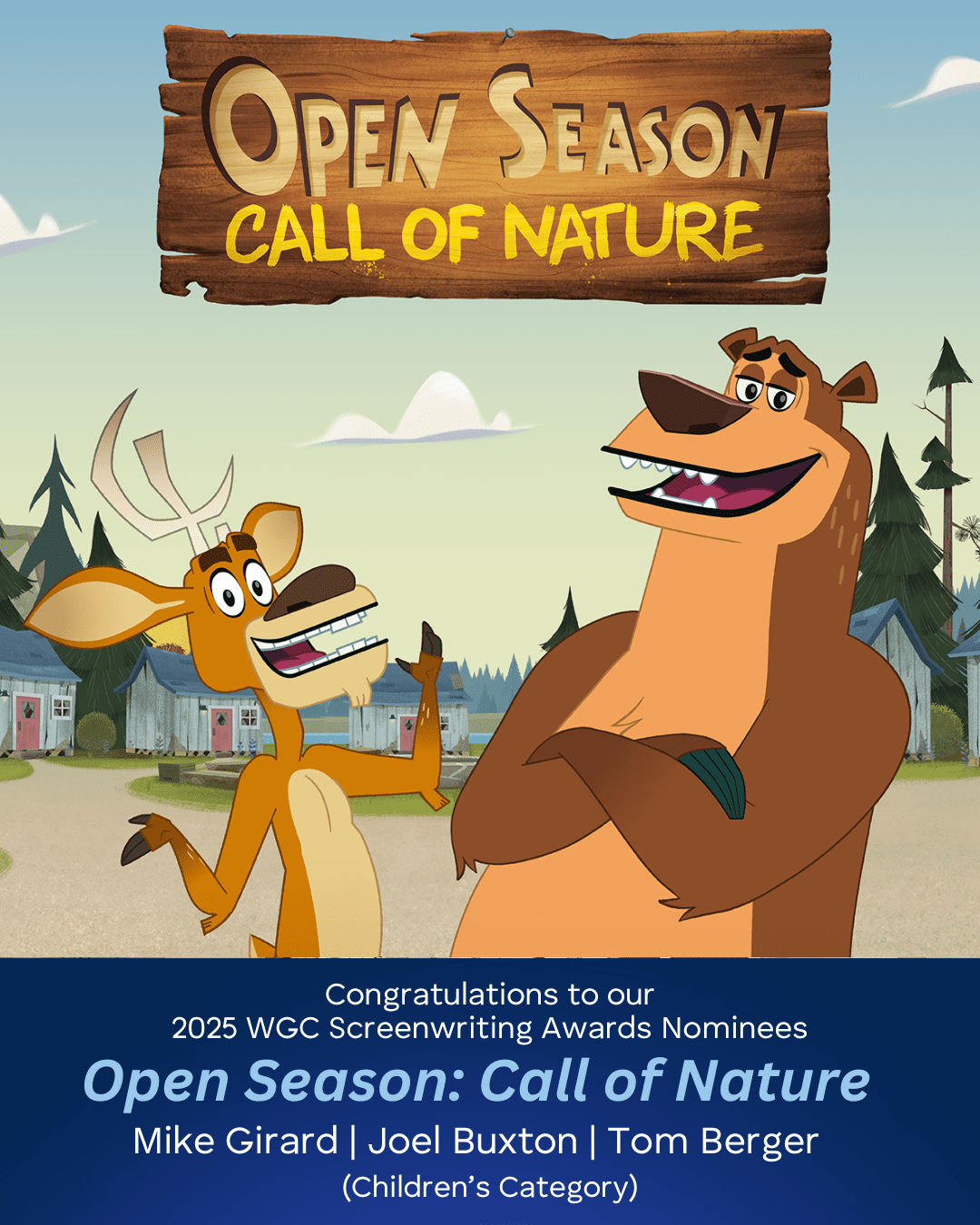 Produced by 9 Story Media Group and Brown Bag Films with Sony Pictures Animation,ย Open Season: Call of Natureย is created for kids 6-11, and follows best friends Boog, a lovable, risk-averse grizzly bear, and Elliot, a fast-talking, โact-first, think-laterโ deer. When the pair discover an abandoned summer camp in the middle of nowhere, they embark on a brave and hilarious adventure to create a new place to live where animals get to embrace their inner wild!